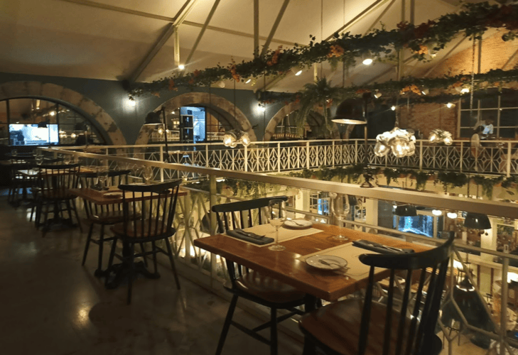 The restaurant itself is stunning and set in a split-level industrial building with exposed brick and hanging plants on every wall.